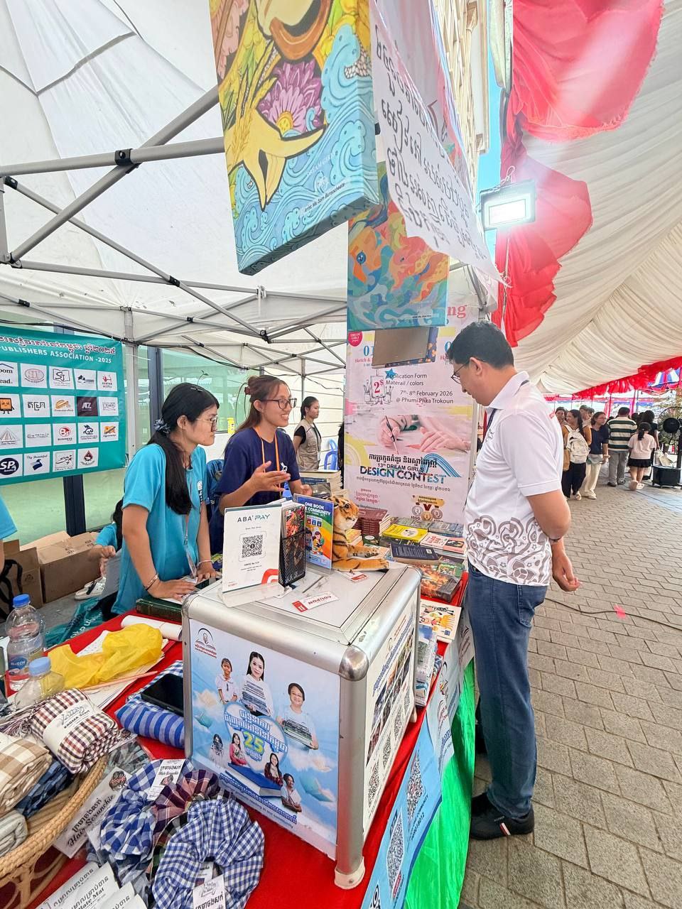 The sponsorship and logistical support provided by the Cambodia Book Publishers Association for the OBOC booth and activities highlighted the close and constructive collaboration between CBPA and One Book One Community. One Book One Community is a project member of CBPA, and this partnership represents a shared vision to promote books, reading, and education as fundamental pillars for national development.