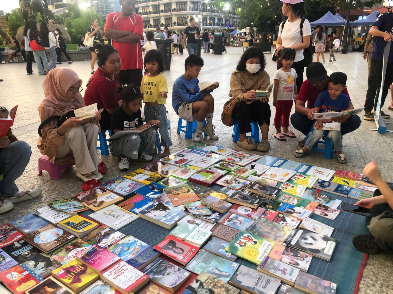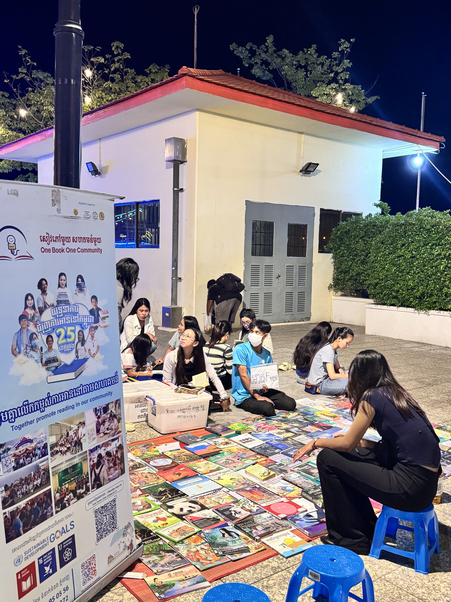 Every weekend in Phnom Penh, an ordinary riverside sidewalk in front of Wat Ounalom transforms into a colorful hub of curiosity and community. As the sun sets along the promenade, members of the One Book One Community (OBOC) initiative roll out Khmer traditional mats, lay down hundreds of books, and invite people to gather and read freely. This is the "Reading Street" project — a mobile library with no wheels yet, but already moving hearts.